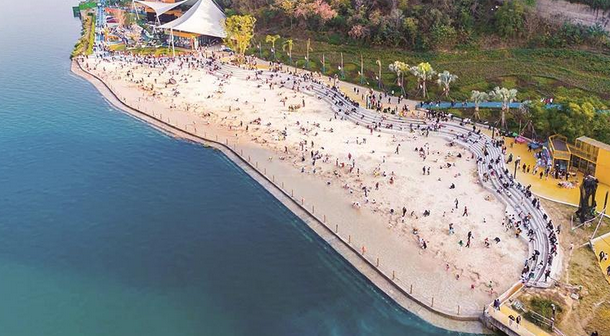 银江湖沙滩。 (市融媒体中心记者 谭浩 摄)