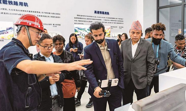 亚太地区媒体代表团参观采访攀钢钒轨梁厂。(市融媒体中心记者 范森 摄)