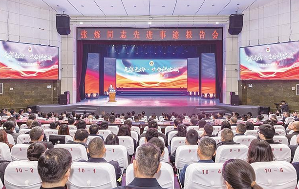报告会首先以短片形式,追忆了张炼同志生前的先进事迹。随后,张炼同志的妻子吴纪红、张炼同志生前战友胡松、张炼同志工作辖区服务对象黎定政和采访张炼同志先进事迹的媒体记者于婷婷等4位报告团成员, (下转2版)